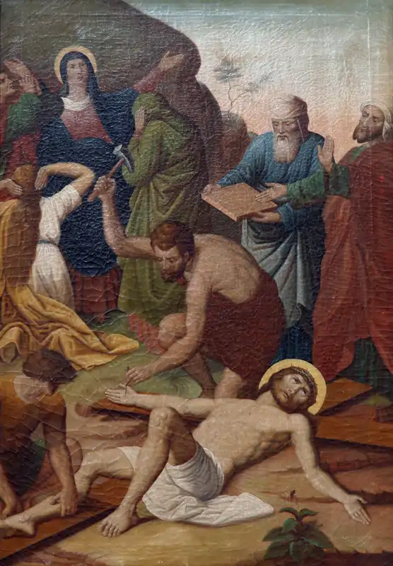 You are stretched out on the cross you have carried so far. The soldiers take big nails and drive them into your hands and feet. You feel abandoned by the people you loved so much. People seem to have gone mad. You have done nothing but good, yet they drive nails through your hands and feet. Sometimes I discriminate against others. Even without thinking, I judge others because of their color, intelligence, income level or name. I forget that I am to live as a brother or sister to all people. Sometimes I use harsh words when I speak to my children and family members. I can find it easy to look for something that isn't very important and make it very important. Help me look again at the people around me. Help me see the hurt and pain I have caused in others. Be with me to help me make amends for the harm I have done. My Jesus, by Thine agony when the cruel nails pierced Thy tender hands and feet and fixed them to the cross, make me crucify my flesh by Christian penance.
