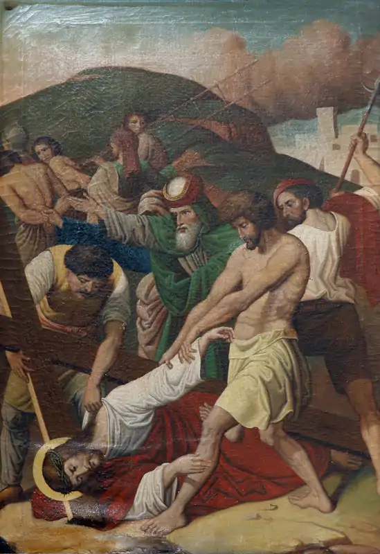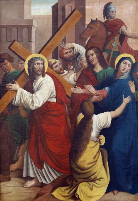Jesus, the soldiers are becoming impatient. This is taking longer than they wanted it to. They are afraid you won't make it to the hill where you will be crucified. As you grow weaker, they grab a man out of the crowd and make him help carry your cross. He was just watching what was happening, but all of a sudden he is helping you carry your cross. Sometimes I try to do as little as I can and still get by. Others might need my help, but I ignore their needs. Even when I'm asked to help, I sometimes claim to be too busy. My Jesus, blest, thrice blest was he who aided Thee to bear the cross. Blest too shall I be if I aid Thee to bear the cross, by patiently bowing my neck to the crosses Thou shalt send me during life. My Jesus, give me grace to do so.