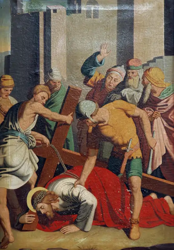 This is the second time you have fallen on the road. As the cross grows heavier and heavier it becomes more difficult to get up. But you continue to struggle and try until you're up and walking again. You don't give up. Sometimes I think I should know more than I do. I become impatient with myself and find it hard to believe in myself when I fail. It is easy to despair over small things, and sometimes I do. Help me when things seem difficult for me. Even when it's hard, help me get up and keep trying as you did. Help me do my best without comparing myself with others. My Jesus, often have I sinned and often, by sin, beaten Thee to the ground beneath the cross. Help me to use the efficacious means of grace that I may never fall again.