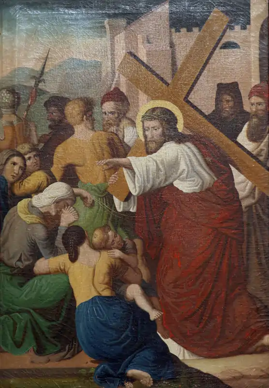 Jesus, as you carry your cross you see a group of women along the road. As you pass by you see they are sad. You stop to spend a moment with them, to offer them some encouragement. Although you are have been abandoned by your friends and are in pain, you stop and try to help them. I sometimes act like a child. I become so absorbed in myself and what I'd like that I forget about the needs of others. I take them for granted, and often ignore their needs. Help me think more about others. Help me remembers that others have problems, too. Help me respond to them even when I'm busy or preoccupied with my own problems. My Jesus, Who didst comfort the pious women of Jerusalem who wept to see Thee bruised and torn, comfort my soul with Thy tender pity, for in Thy pity lies my trust. May my heart ever answer Thine.